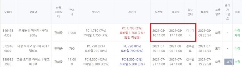 검수 대기에서 검수 완료로 바뀌면 럭키투데이에 설정하신 가격에 맞게 상품 정보(할인한 가격)를 수정하시면 됩니다.