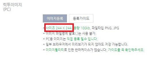 PC와 모바일 이미지 조건입니다. PC는 사이즈만 잘 맞추셔서 올리면 되는데